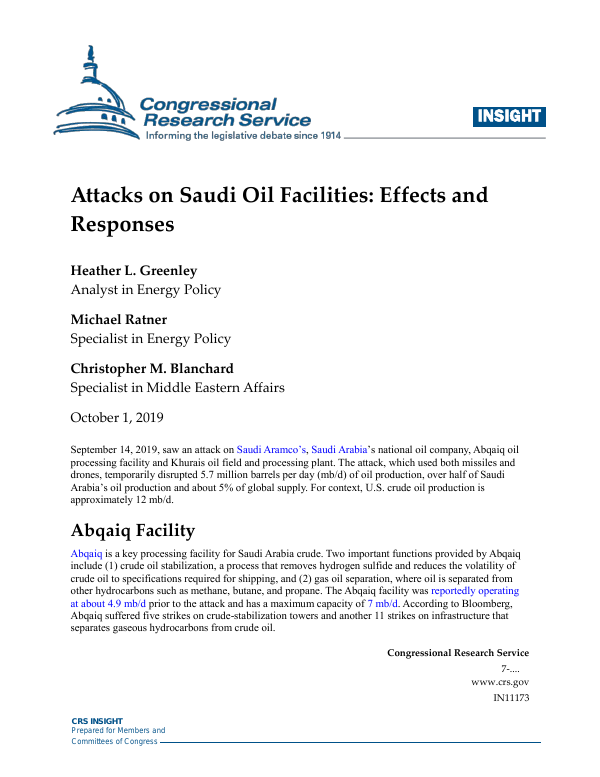 Attacks On Saudi Oil Facilities Effects And Responses Everycrsreport Com