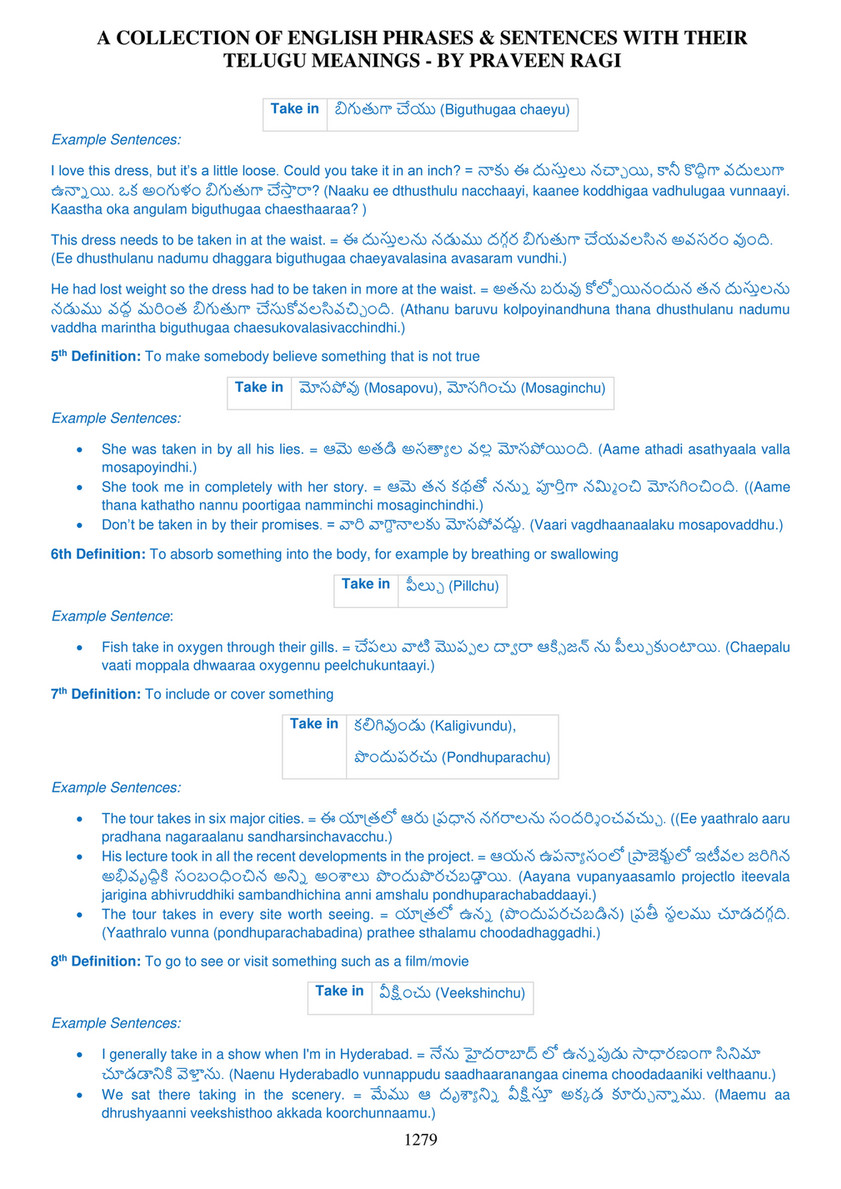 My Publications 04 A Collection Of English Phrases Sentences With Telugu Meanings By Praveen Ragi 6 6 2017 Page 1277 Created With Publitas Com