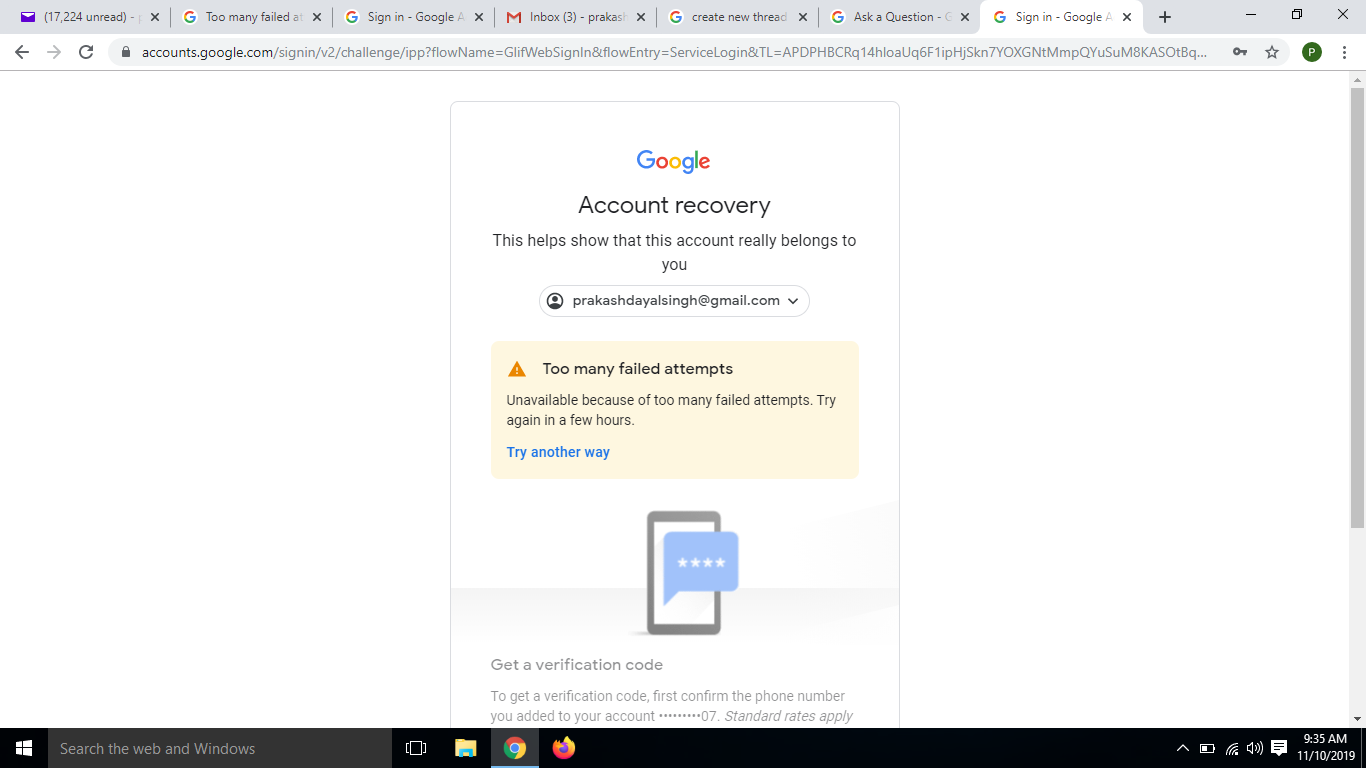 Recover Password Of Gmail Too Many Failed Attempts Unavailable Because Of Too Many Failed Attempts Google Account Community