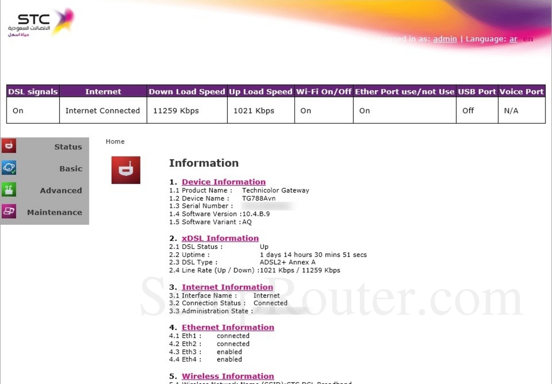 Technicolor Tg788avn Stc Screenshot Home